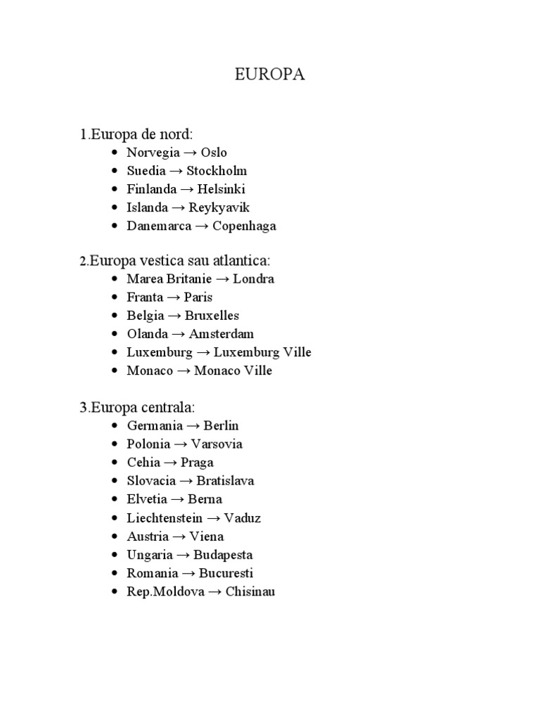 Statele Si Capitalele Europei