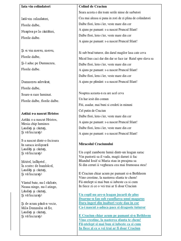 Din aburul meu de cuvinte. E vremea colindelor, e vremea colindelor veniti cantati si va bucurati craciunul in casa asteptati e vreama colindelor e vremea colindelor e seara sfanta si nu uita craciunul e in inima ta. Numărul pacienților de la ati, în ușoară scădere, dar tot ridicat 10 apr citește mai multe.