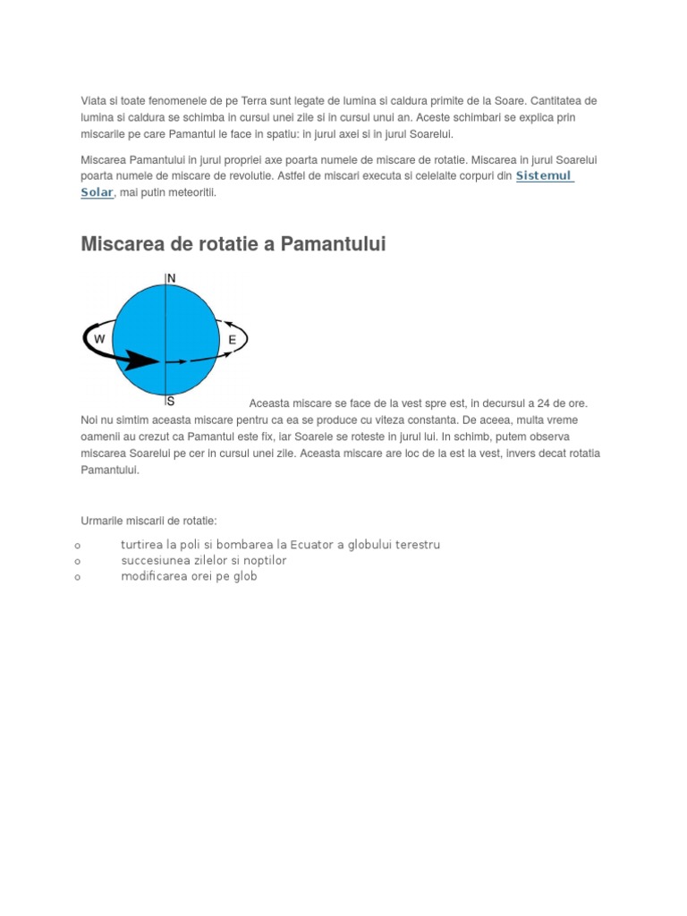 vizitati articolul complet aici : https://app.emaze.com/@AOZCLCROO Viteza variază în funcţie de locul de pe planetă în care ne aflam, cu valori cuprinse între 241, 4 şi 1673, 7 km/h. Miscarea a rotatie a soarelui. Astfel de miscari executa si celelalte corpuri dinsistemul solar, mai putin meteoritii.miscarea de rotatie a pamantuluiaceasta miscare se face de la vest spre est, in decursul a 24 de ore.